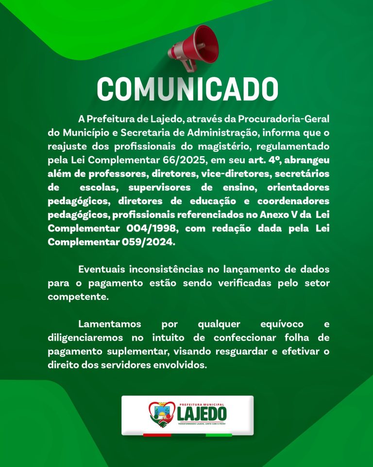 A Prefeitura Municipal de Lajedo-PE, através da Secretaria Municipal Educação no uso de suas atribuições, tendo em vista o disposto na Portaria nº 183, de